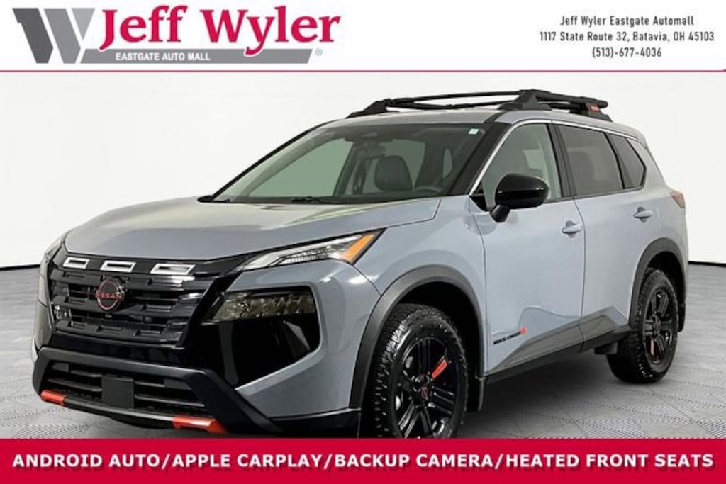 Jeff Wyler Eastgate Auto Mall is pumped up to offer this outstanding 2026 Nissan Rogue Rock Creek in Boulder Gray Pearl. Well equipped with: 4-Wheel Disc Brakes, 6 Speakers, ABS brakes, Air Conditioning, Alloy wheels, AM/FM radio: Sirius, Apple CarPlay/Android Auto, Auto High-beam Headlights, Automatic temperature control, Black Splash Guards (set of 4), Brake assist, Delay-off headlights, Driver door bin, Driver vanity mirror, Dual front impact airbags, Dual front side impact airbags, Electronic Stability Control, Emergency communication system: NissanConnect Services, First Aid Kit, Four wheel independent suspension, Front anti-roll bar, Front Bucket Seats, Front Center Armrest, Front dual zone A/C, Front reading lights, Fully automatic headlights, Heated door mirrors, Heated Front Bucket Seats, Heated front seats, Illuminated entry, Knee airbag, Leatherette and Ballistic Nylon Seating, Low tire pressure warning, Occupant sensing airbag, Outside temperature display, Overhead airbag, Overhead console, Panic alarm, Passenger door bin, Passenger vanity mirror, Power door mirrors, Power driver seat, Power Liftgate, Power steering, Power windows, Premium Paint, Radio data system, Radio: AM/FM NissanConnect, Rear anti-roll bar, Rear seat center armrest, Rear side impact airbag, Rear window defroster, Rear window wiper, Remote keyless entry, Roof rack, Speed control, Speed-sensing steering, Speed-Sensitive Wipers, Split folding rear seat, Spoiler, Steering wheel mounted audio controls, Tachometer, Telescoping steering wheel, Tilt steering wheel, Traction control, Trip computer, Variably intermittent wipers, and Wheels: 17" Dark Painted Alloy. Clean CARFAX. Ask about available certifications. Used vehicles 10 years of age or newer with less than 100,000 miles are eligible for the Wyler Assurance Program, but eligible vehicles must pass our reconditioning process and multi-point inspection. Provided the vehicle passes inspection, vehicles will be eligible for the 6 month/6,000 mile limited warranty. The 6 month/6,000 mile limited warranty is NOT available on AS-IS vehicles, wholesale vehicles, lease buyback/pass-thru vehicles or un-inspected vehicles. Note that this program can also apply to vehicles where the remaining factory coverage is less than 6 months or 6,000 miles. Please check the Federal Trade Commission (FTC) Buyers guide on the vehicle for full details as to whether or not warranty coverage may apply. Contact Dealer for additional details. The Wyler Assurance 6 month/6,000 Mile limited warranty ends 6 months from the date of the Retail Purchase Agreement (BUYERS ORDER) or when the vehicle's odometer registers 6,000 additional miles to the mileage listed on the BUYERS ORDER, whichever comes first. Your Deductible - The warranty holder on your contract pays the first $100 of each covered repair.