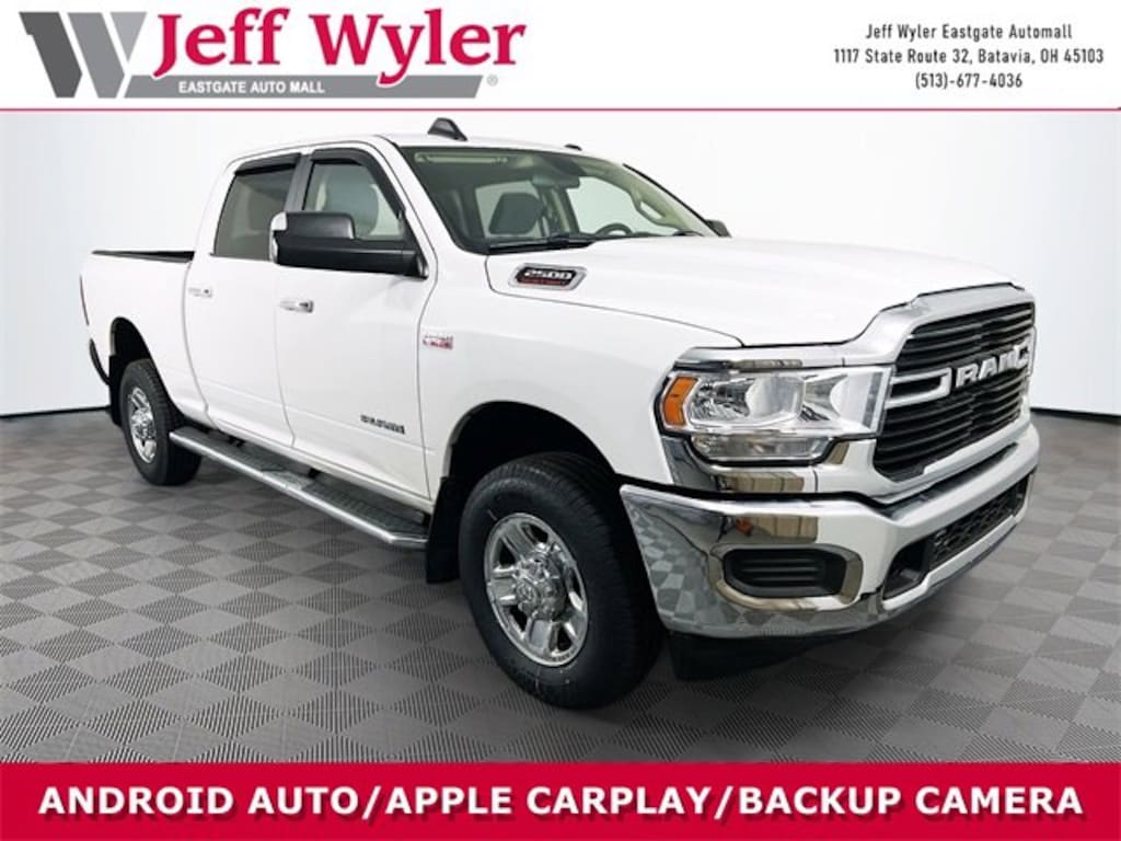 Jeff Wyler Eastgate Auto Mall is honored to offer this stunning-looking 2019 Ram 2500 Big Horn in Bright White Clearcoat. Well equipped with: Quick Order Package 2ZZ Big Horn, 2 Way Rear Headrest Seat, 3.73 Axle Ratio, 4 Way Front Headrests, 4-Wheel Disc Brakes, 40/20/40 Split Bench Seat, 6 Speakers, ABS brakes, Active Noise Control System, Air Conditioning, AM/FM radio, Brake assist, Bumpers: chrome, Center Hub, Center Stack Storage Drawer, Chrome Flat Wheel-to-Wheel Side Steps, Cloth 40/20/40 Bench Seat, Compass, Delay-off headlights, Driver door bin, Dual front impact airbags, Dual front side impact airbags, Electronic Stability Control, Electronically Controlled Throttle, Front anti-roll bar, Front Center Armrest w/Storage, Front reading lights, Fully automatic headlights, Heated door mirrors, Illuminated entry, Low tire pressure warning, Manual Adjust 4-Way Driver Seat, Manufacturer's Statement of Origin, Occupant sensing airbag, Outside temperature display, Overhead airbag, Overhead console, Panic alarm, ParkView Rear Back-Up Camera, Passenger door bin, Passenger vanity mirror, Power door mirrors, Power steering, Power windows, Radio data system, Radio: Uconnect 3 w/5" Display, Rear anti-roll bar, Rear Folding Seat, Rear seat center armrest, Rear step bumper, Remote keyless entry, Selectable Tire Fill Alert, Speed control, Tachometer, Tilt steering wheel, Tip Start, Traction control, Trip computer, Turn signal indicator mirrors, Variably intermittent wipers, Vendor Painted Cargo Box Tracking, Voltmeter, and Wheels: 18" x 8.0" Steel Chrome Clad. Ask about available certifications. Used vehicles 10 years of age or newer with less than 100,000 miles are eligible for the Wyler Assurance Program, but eligible vehicles must pass our reconditioning process and multi-point inspection. Provided the vehicle passes inspection, vehicles will be eligible for the 6 month/6,000 mile limited warranty. The 6 month/6,000 mile limited warranty is NOT available on AS-IS vehicles, wholesale vehicles, lease buyback/pass-thru vehicles or un-inspected vehicles. Note that this program can also apply to vehicles where the remaining factory coverage is less than 6 months or 6,000 miles. Please check the Federal Trade Commission (FTC) Buyers guide on the vehicle for full details as to whether or not warranty coverage may apply. Contact Dealer for additional details. The Wyler Assurance 6 month/6,000 Mile limited warranty ends 6 months from the date of the Retail Purchase Agreement (BUYERS ORDER) or when the vehicle's odometer registers 6,000 additional miles to the mileage listed on the BUYERS ORDER, whichever comes first. Your Deductible - The warranty holder on your contract pays the first $100 of each covered repair.