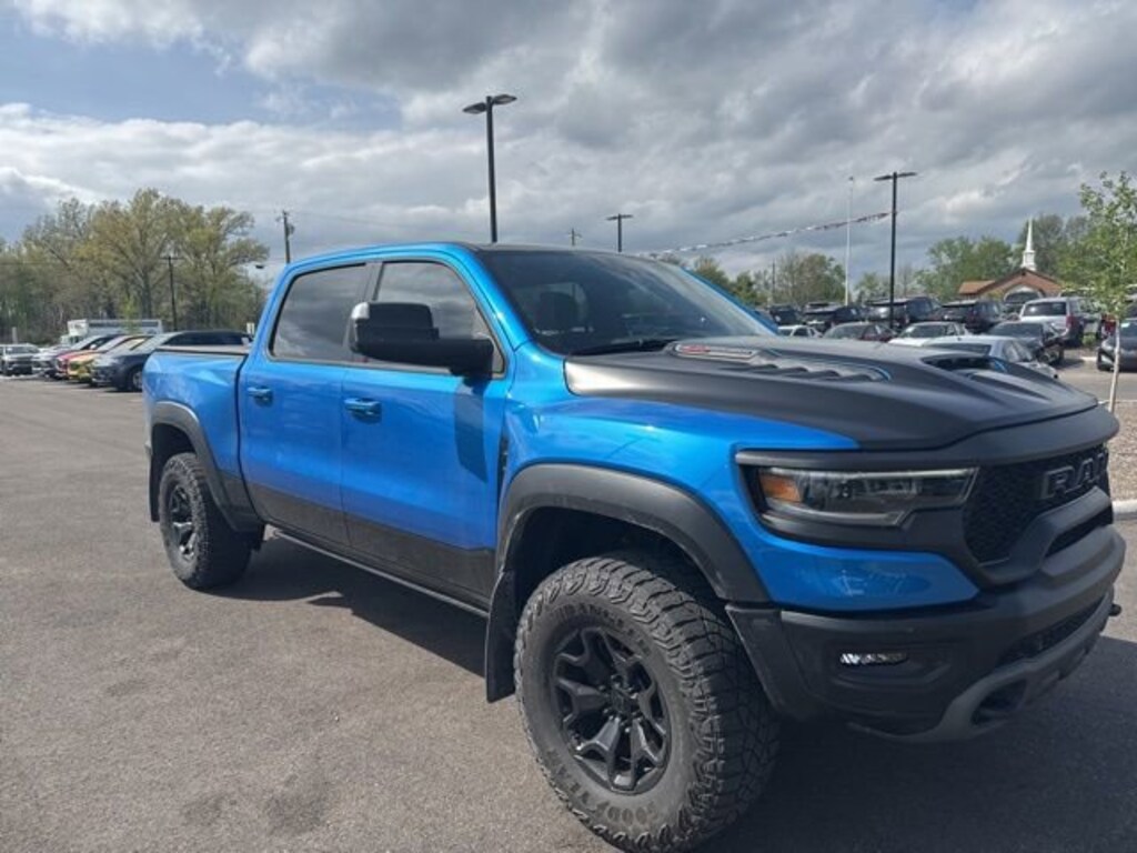 Jeff Wyler Eastgate Auto Mall is very proud to offer this attractive 2021 Ram 1500 TRX in Hydro Blue Pearlcoat. Well equipped with: Quick Order Package 29Y, Technology Group (Heads-Up Display, LED CHMSL Lamp, and Rearview Autodim Digital Display Mirror), Trailer Tow Group (Trailer Brake Control, Trailer Light Check, and Trailer Tire Pressure Monitoring System), TRX Level 2 Equipment Group (4 Way Front Headrests, Blind Spot & Cross Path Detection, Body Color Door Handles, Bucket Seats, Driver Seat Memory, Driver/Passenger Wrapped Assist Handles, Exterior Mirrors w/Memory, Front Door Accent Lighting, Full Length Premium Upgraded Floor Console, Heated Front Seats, Heated Second Row Seats, Heated Steering Wheel, IP LED Ambient Light Pipe, Leather Trimmed Bucket Seats, Leather/Suede Flat-Bottom Steering Wheel, Luxury Front Door Trim Panel, ParkSense Front/Rear Park Assist w/Stop, Pick-Up Box Lighting, Power 4-Way Driver Lumbar Adjust, Power 4-Way Passenger Lumbar Adjust, Power 8-Way Driver & Passenger Seats, Power Adjustable Pedals w/Memory, Premium Wrapped IP Bezel, Radio/Driver Seat/Mirrors/Pedals Memory, Rain Sensitive Windshield Wipers, Rear 60/40 Folding Split Recline Seat, Rear Door Accent Lighting, Rear Underseat Compartment Storage, Rear Window Defroster, Remote Proximity Keyless Entry, Remote Start System, Remote Tailgate Release, Sun Visors w/Illuminated Vanity Mirrors, Surround View Camera System, Universal Garage Door Opener, Ventilated Front Seats, Ventilated Rear Seats, and Wireless Charging Pad), 10 Speakers, 3.55 Rear Axle Ratio, 4-Wheel Disc Brakes, ABS brakes, Adaptive suspension, Air Conditioning, Alloy wheels, AM/FM radio: SiriusXM with 360L, Apple CarPlay/Android Auto, Auto High-beam Headlights, Auto-dimming door mirrors, Auto-dimming Rear-View mirror, Automatic temperature control, Black Exterior Mirrors, Black Power-Fold Trailer Tow Mirrors, Brake assist, Cloth/Vinyl Bucket Seats, Compass, Delay-off headlights, Driver door bin, Dual front impact airbags, Dual front side impact airbags, Electronic Stability Control, Emergency communication system: SiriusXM Guardian, Exterior Mirrors Courtesy Lamps, Exterior Mirrors w/Heating Element, Exterior Mirrors w/Supplemental Signals, Front anti-roll bar, Front Bucket Seats, Front Center Armrest w/Storage, Front dual zone A/C, Front fog lights, Front License Plate Bracket, Front reading lights, Front wheel independent suspension, Fully automatic headlights, harman/kardon 19 Speaker Premium Sound, Heated door mirrors, Illuminated entry, Leather Shift Knob, Leather steering wheel, Low tire pressure warning, Mirror Clearance/Running Lights, Mirror-Mounted Aux Reverse Lamps, Navigation System, Occupant sensing airbag, Outside temperature display, Overhead airbag, Overhead console, Panic alarm, ParkView Rear Back-Up Camera, Passenger door bin, Passenger vanity mirror, Power door mirrors, Power driver seat, Power steering, Power windows, Power-Folding Mirrors, Radio data system, Radio: Uconnect 12 w/Navigation, Rear seat center armrest, Rear step bumper, Remote keyless entry, Security system, Speed control, Split folding rear seat, Sport steering wheel, Steering wheel mounted audio controls, Tachometer, Telescoping steering wheel, Tilt steering wheel, Traction control, Trailer Tow Mirrors, Trip computer, Turn signal indicator mirrors, Variably intermittent wipers, Voltmeter, and Wheels: 18" x 9" Black Paint/Polish Aluminum. Clean CARFAX. Awards: * Motor Trend Automobiles of the year * JD Power Automotive Performance, Execution and Layout (APEAL) Study Ask about available certifications. Used vehicles 10 years of age or newer with less than 100,000 miles are eligible for the Wyler Assurance Program, but eligible vehicles must pass our reconditioning process and multi-point inspection. Provided the vehicle passes inspection, vehicles will be eligible for the 6 month/6,000 mile limited warranty. The 6 month/6,000 mile limited warranty is NOT available on AS-IS vehicles, whole