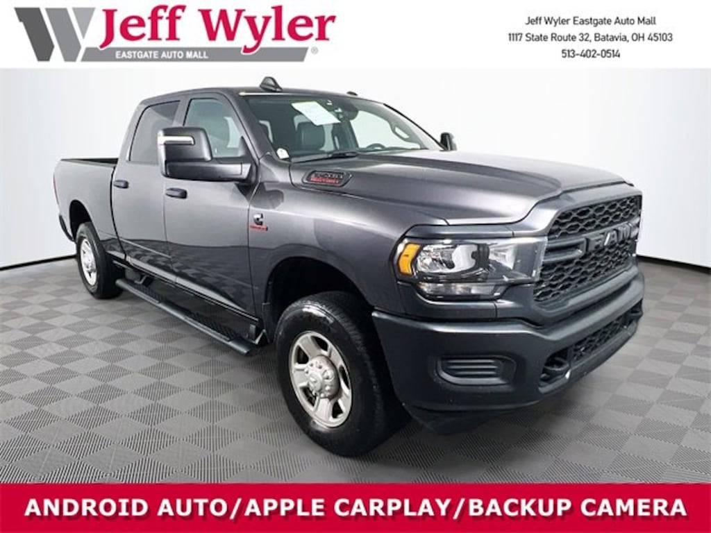 Jeff Wyler Eastgate Auto Mall is honored to offer this terrific-looking 2024 Ram 3500 Tradesman in Granite Crystal Metallic Clearcoat. Well equipped with: Convenience Group (Air Conditioning ATC w/Dual Zone Control, Auto-Dimming Rear-View Mirror, and Tinted Acoustic Windshield Glass), Quick Order Package 21A Tradesman, Tradesman Level 1 Equipment Group, 2 Way Rear Headrest Seat, 220 Amp Alternator, 3.73 Axle Ratio, 4 Way Front Headrests, 4-Wheel Disc Brakes, 40/20/40 Split Bench Seat, 4G LTE Wi-Fi Hot Spot, 5th Wheel/Gooseneck Towing Prep Group, 6 Speakers, 8.4" Touchscreen Display, ABS brakes, Active Noise Control System, Air Conditioning, Alexa Built-In, All R1 High Radios, All Radio Equipped Vehicles, AM/FM radio, Apple CarPlay, Auto Level Rear Air Suspension, Black Exterior Mirrors, Brake assist, Carpet Floor Covering, Center Hub, Compass, Connected Travel & Traffic Services, Connectivity - US/Canada, Dash Pass Thru Wire Circuits, Delay-off headlights, Disassociated Touchscreen Display, Driver door bin, Dual front impact airbags, Dual front side impact airbags, Electronic Stability Control, Electronically Controlled Throttle, Emergency communication system: SiriusXM Guardian, For Details Visit DriveUconnect.com, For More Info, Call 800-643-2112, Front & Rear Floor Mats, Front anti-roll bar, Front Armrest w/Cupholders, Front Center Armrest w/Storage, Front License Plate Bracket, Front reading lights, Fully automatic headlights, Global Telematics Box Module (TBM), Google Android Auto, GPS Antenna Input, GPS Navigation, HD Radio, HD Vinyl 40/20/40 Split Bench Seat, I/P Mounted Auxiliary Switches, Illuminated entry, Integrated Center Stack Radio, Integrated Voice Command w/Bluetooth, Low tire pressure warning, Manual Adjust 4-Way Driver Seat, Manual Adjust 4-Way Front Passenger Seat, Manual Folding Exterior Mirrors, Manual Telescoping Mirrors, Manufacturer's Statement of Origin, MOPAR Spray In Bedliner, Occupant sensing airbag, Off-Road Information Pages, Outside temperature display, Overhead airbag, Overhead console, Panic alarm, ParkView Rear Back-Up Camera, Passenger door bin, Passenger vanity mirror, Power steering, Power windows, Radio data system, Radio: Uconnect 3 w/5" Display, Radio: Uconnect 5 Nav w/8.4" Display, Rear Folding Seat, Rear step bumper, Rear Wheelhouse Liners, Remote keyless entry, Remote USB Port - Charge Only, Selectable Tire Fill Alert, SiriusXM Radio Service, SiriusXM w/360L, Speed control, Storage Tray, Tachometer, Tilt steering wheel, Tip Start, Traction control, Trailer Brake Control, Trailer Light Check, Trailer Tow Pages, Variably intermittent wipers, Voltmeter, and Wheels: 18" x 8.0" SteeL. CARFAX One-Owner. Ask about available certifications. Used vehicles 10 years of age or newer with less than 100,000 miles are eligible for the Wyler Assurance Program, but eligible vehicles must pass our reconditioning process and multi-point inspection. Provided the vehicle passes inspection, vehicles will be eligible for the 6 month/6,000 mile limited warranty. The 6 month/6,000 mile limited warranty is NOT available on AS-IS vehicles, wholesale vehicles, lease buyback/pass-thru vehicles or un-inspected vehicles. Note that this program can also apply to vehicles where the remaining factory coverage is less than 6 months or 6,000 miles. Please check the Federal Trade Commission (FTC) Buyers guide on the vehicle for full details as to whether or not warranty coverage may apply. Contact Dealer for additional details. The Wyler Assurance 6 month/6,000 Mile limited warranty ends 6 months from the date of the Retail Purchase Agreement (BUYERS ORDER) or when the vehicle's odometer registers 6,000 additional miles to the mileage listed on the BUYERS ORDER, whichever comes first. Your Deductible - The warranty holder on your contract pays the first $100 of each covered repair.