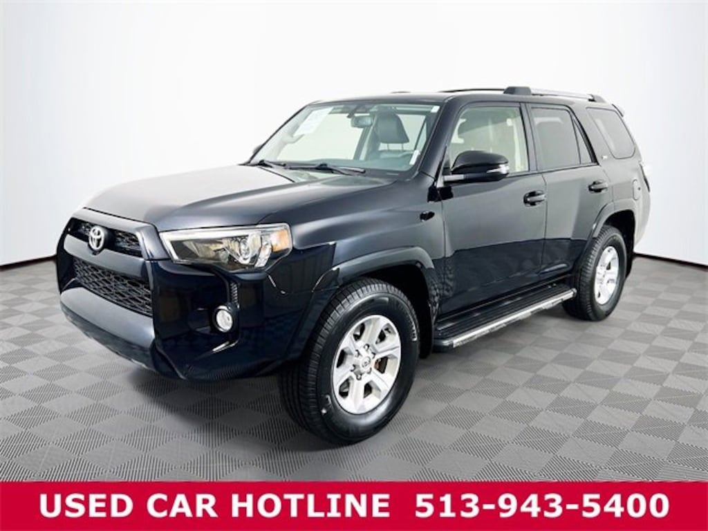 Jeff Wyler Eastgate Auto Mall is honored to offer this attractive 2019 Toyota 4Runner SR5 Premium in Black. Well equipped with: 17" x 7.0" 6-Spoke Alloy Wheels, ABS brakes, Alloy wheels, Body Color Heated Mirrors, Compass, Electronic Stability Control, Heated door mirrors, Heated Front Bucket Seats, Heated front seats, Illuminated entry, Low tire pressure warning, Remote keyless entry, Traction control, 3.727 Axle Ratio, 4-Wheel Disc Brakes, 8 Speakers, Air Conditioning, AM/FM radio: SiriusXM, Anti-whiplash front head restraints, Auto-Dimming Rear-View Mirror, Auto-dimming Rear-View mirror, Brake assist, Bumpers: body-color, CD player, Driver door bin, Driver vanity mirror, Dual front impact airbags, Dual front side impact airbags, Emergency communication system: Safety Connect, Exterior Parking Camera Rear, Front anti-roll bar, Front Bucket Seats, Front Center Armrest, Front fog lights, Front reading lights, Front wheel independent suspension, Garage Door Opener, Garage door transmitter: HomeLink, Knee airbag, Leather Shift Knob, Leather steering wheel, Occupant sensing airbag, Outside temperature display, Overhead airbag, Overhead console, Panic alarm, Passenger door bin, Passenger vanity mirror, Power door mirrors, Power driver seat, Power passenger seat, Power steering, Power windows, Radio: Entune Premium Audio w/Navigation, Rear anti-roll bar, Rear seat center armrest, Rear window defroster, Rear window wiper, Roof rack: rails only, Security system, Softex Synthetic Leather Seat Trim, Speed control, Speed-sensing steering, Split folding rear seat, Spoiler, Steering wheel mounted audio controls, Tachometer, Telescoping steering wheel, Tilt steering wheel, Trip computer, Turn signal indicator mirrors, and Variably intermittent wipers. Clean CARFAX. Awards: * 2019 KBB.com Best Resale Value Awards * 2019 KBB.com Brand Image Awards Ask about available certifications. Used vehicles 10 years of age or newer with less than 100,000 miles are eligible for the Wyler Assurance Program, but eligible vehicles must pass our reconditioning process and multi-point inspection. Provided the vehicle passes inspection, vehicles will be eligible for the 6 month/6,000 mile limited warranty. The 6 month/6,000 mile limited warranty is NOT available on AS-IS vehicles, wholesale vehicles, lease buyback/pass-thru vehicles or un-inspected vehicles. Note that this program can also apply to vehicles where the remaining factory coverage is less than 6 months or 6,000 miles. Please check the Federal Trade Commission (FTC) Buyers guide on the vehicle for full details as to whether or not warranty coverage may apply. Contact Dealer for additional details. The Wyler Assurance 6 month/6,000 Mile limited warranty ends 6 months from the date of the Retail Purchase Agreement (BUYERS ORDER) or when the vehicle's odometer registers 6,000 additional miles to the mileage listed on the BUYERS ORDER, whichever comes first. Your Deductible - The warranty holder on your contract pays the first $100 of each covered repair.