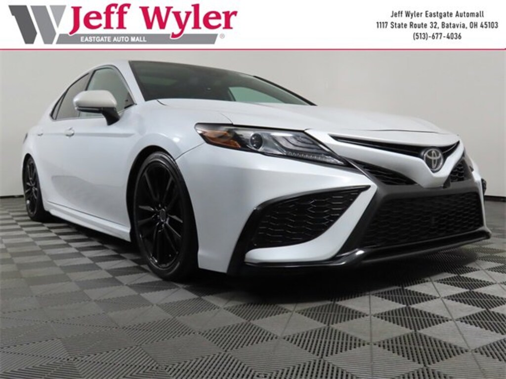 Jeff Wyler Eastgate Auto Mall is pleased to offer this fantastic 2021 Toyota Camry XSE in . Well equipped with: 4-Wheel Disc Brakes, 6 Speakers, ABS brakes, Air Conditioning, Alloy wheels, AM/FM radio: SiriusXM, Apple CarPlay/Android Auto, Auto High-beam Headlights, Auto-dimming Rear-View mirror, Automatic temperature control, Brake assist, Bumpers: body-color, Delay-off headlights, Driver door bin, Driver vanity mirror, Dual front impact airbags, Dual front side impact airbags, Electronic Stability Control, Emergency communication system: Safety Connect with 1-year trial, Exterior Parking Camera Rear, Four wheel independent suspension, Front anti-roll bar, Front Bucket Seats, Front Center Armrest, Front dual zone A/C, Front reading lights, Fully automatic headlights, Garage door transmitter: HomeLink, Heated door mirrors, Heated front seats, Illuminated entry, Knee airbag, Low tire pressure warning, Multi-Stage Heated Front Bucket Seats, Occupant sensing airbag, Outside temperature display, Overhead airbag, Overhead console, Panic alarm, Passenger door bin, Passenger vanity mirror, Perforated Leather Seat Trim, Power door mirrors, Power driver seat, Power passenger seat, Power steering, Power windows, Radio data system, Radio: AM/FM/HD Audio Plus, Rear anti-roll bar, Rear reading lights, Rear seat center armrest, Rear side impact airbag, Rear window defroster, Remote keyless entry, Security system, Speed control, Speed-sensing steering, Split folding rear seat, Spoiler, Steering wheel mounted audio controls, Tachometer, Telescoping steering wheel, Tilt steering wheel, Traction control, Trip computer, Turn signal indicator mirrors, Variably intermittent wipers, and Wheels: 8.0J x 19" Black Machined-Finish Alloy. Ask about available certifications. Used vehicles 10 years of age or newer with less than 100,000 miles are eligible for the Wyler Assurance Program, but eligible vehicles must pass our reconditioning process and multi-point inspection. Provided the vehicle passes inspection, vehicles will be eligible for the 6 month/6,000 mile limited warranty. The 6 month/6,000 mile limited warranty is NOT available on AS-IS vehicles, wholesale vehicles, lease buyback/pass-thru vehicles or un-inspected vehicles. Note that this program can also apply to vehicles where the remaining factory coverage is less than 6 months or 6,000 miles. Please check the Federal Trade Commission (FTC) Buyers guide on the vehicle for full details as to whether or not warranty coverage may apply. Contact Dealer for additional details. The Wyler Assurance 6 month/6,000 Mile limited warranty ends 6 months from the date of the Retail Purchase Agreement (BUYERS ORDER) or when the vehicle's odometer registers 6,000 additional miles to the mileage listed on the BUYERS ORDER, whichever comes first. Your Deductible - The warranty holder on your contract pays the first $100 of each covered repair.