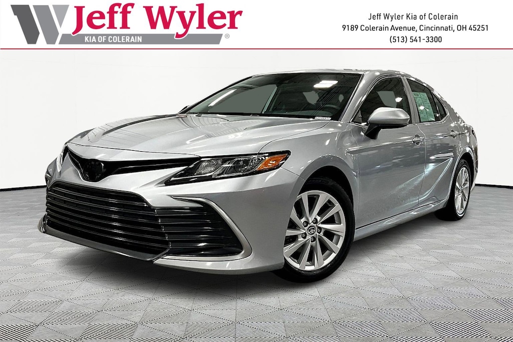 Jeff Wyler Kia of Colerain is pleased to offer this fantastic 2022 Toyota Camry LE in Celestial Silver Metallic. 4-Wheel Disc Brakes, 6 Speakers, 7.5J x 17" Alloy Wheels, ABS brakes, Air Conditioning, Alloy wheels, AM/FM radio: SiriusXM, Apple CarPlay/Android Auto, Auto High-beam Headlights, Automatic temperature control, Brake assist, Bumpers: body-color, Delay-off headlights, Driver door bin, Driver vanity mirror, Dual front impact airbags, Dual front side impact airbags, Electronic Stability Control, Emergency communication system: Safety Connect with 1-year trial, Exterior Parking Camera Rear, Fabric Seat Trim, Four wheel independent suspension, Front anti-roll bar, Front Bucket Seats, Front Center Armrest, Front dual zone A/C, Front reading lights, Fully automatic headlights, Illuminated entry, Knee airbag, Low tire pressure warning, Occupant sensing airbag, Outside temperature display, Overhead airbag, Overhead console, Panic alarm, Passenger door bin, Passenger vanity mirror, Power door mirrors, Power driver seat, Power steering, Power windows, Radio data system, Radio: AM/FM Audio System, Rear anti-roll bar, Rear seat center armrest, Rear side impact airbag, Rear window defroster, Remote keyless entry, Security system, Speed control, Speed-sensing steering, Split folding rear seat, Steering wheel mounted audio controls, Tachometer, Telescoping steering wheel, Tilt steering wheel, Traction control, Trip computer, and Variably intermittent wipers Our PRE-OWNED vehicles are put through a rigorous 167- POINT QUALITY ASSURANCE INSPECTION along with an average amount of over $1,400.00 SPENT to recondition each vehicle so we can be sure to deliver you the highest quality vehicle like you deserve! ***ONLINE PRICE DOES NOT INCLUDE WYLER FAMILY FIRST PACKAGE***