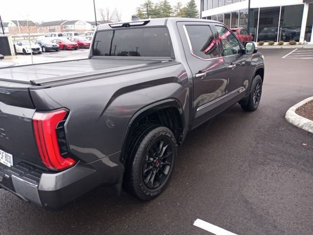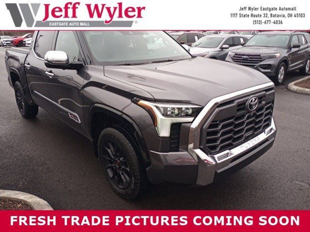 Jeff Wyler Eastgate Auto Mall is pleased to offer this gorgeous 2023 Toyota Tundra 1794 in Gray. Well equipped with: 10-Way Pwr Adj Heated and Ventilated Front Seats, 12 Speakers, 3.31 Axle Ratio, 4-Wheel Disc Brakes, ABS brakes, Air Conditioning, Alloy wheels, AM/FM radio: SiriusXM, Apple CarPlay/Android Auto, Auto High-beam Headlights, Auto-dimming door mirrors, Auto-dimming Rear-View mirror, Automatic temperature control, Brake assist, Bumpers: body-color, Chrome Exhaust Tail Pipe & Diffuser, Delay-off headlights, Driver door bin, Driver vanity mirror, Dual front impact airbags, Dual front side impact airbags, Electronic Stability Control, Emergency communication system: Safety Connect (10-year trial), Front anti-roll bar, Front Bucket Seats, Front Center Armrest, Front dual zone A/C, Front fog lights, Front reading lights, Front wheel independent suspension, Fully automatic headlights, Garage door transmitter: HomeLink, Heated door mirrors, Heated front seats, Heated rear seats, Heated steering wheel, Illuminated entry, Knee airbag, Leather Seat Trim, Leather Shift Knob, Low tire pressure warning, Memory seat, Navigation System, Occupant sensing airbag, Outside temperature display, Overhead airbag, Overhead console, Panic alarm, Passenger door bin, Passenger vanity mirror, Power door mirrors, Power driver seat, Power moonroof, Power passenger seat, Power steering, Power windows, Radio data system, Radio: Audio Multimedia System, Rain sensing wipers, Rear reading lights, Rear seat center armrest, Rear step bumper, Rear window defroster, Remote keyless entry, Safety Connect, Security system, Speed control, Speed-sensing steering, Split folding rear seat, Steering wheel memory, Steering wheel mounted audio controls, Tachometer, Telescoping steering wheel, Tilt steering wheel, Traction control, Trip computer, Turn signal indicator mirrors, Variably intermittent wipers, Ventilated front seats, Ventilated rear seats, Voltmeter, and Wheels: 20" Machined Finish Alloy. Ask about available certifications. Used vehicles 10 years of age or newer with less than 100,000 miles are eligible for the Wyler Assurance Program, but eligible vehicles must pass our reconditioning process and multi-point inspection. Provided the vehicle passes inspection, vehicles will be eligible for the 6 month/6,000 mile limited warranty. The 6 month/6,000 mile limited warranty is NOT available on AS-IS vehicles, wholesale vehicles, lease buyback/pass-thru vehicles or un-inspected vehicles. Note that this program can also apply to vehicles where the remaining factory coverage is less than 6 months or 6,000 miles. Please check the Federal Trade Commission (FTC) Buyers guide on the vehicle for full details as to whether or not warranty coverage may apply. Contact Dealer for additional details. The Wyler Assurance 6 month/6,000 Mile limited warranty ends 6 months from the date of the Retail Purchase Agreement (BUYERS ORDER) or when the vehicle's odometer registers 6,000 additional miles to the mileage listed on the BUYERS ORDER, whichever comes first. Your Deductible - The warranty holder on your contract pays the first $100 of each covered repair.