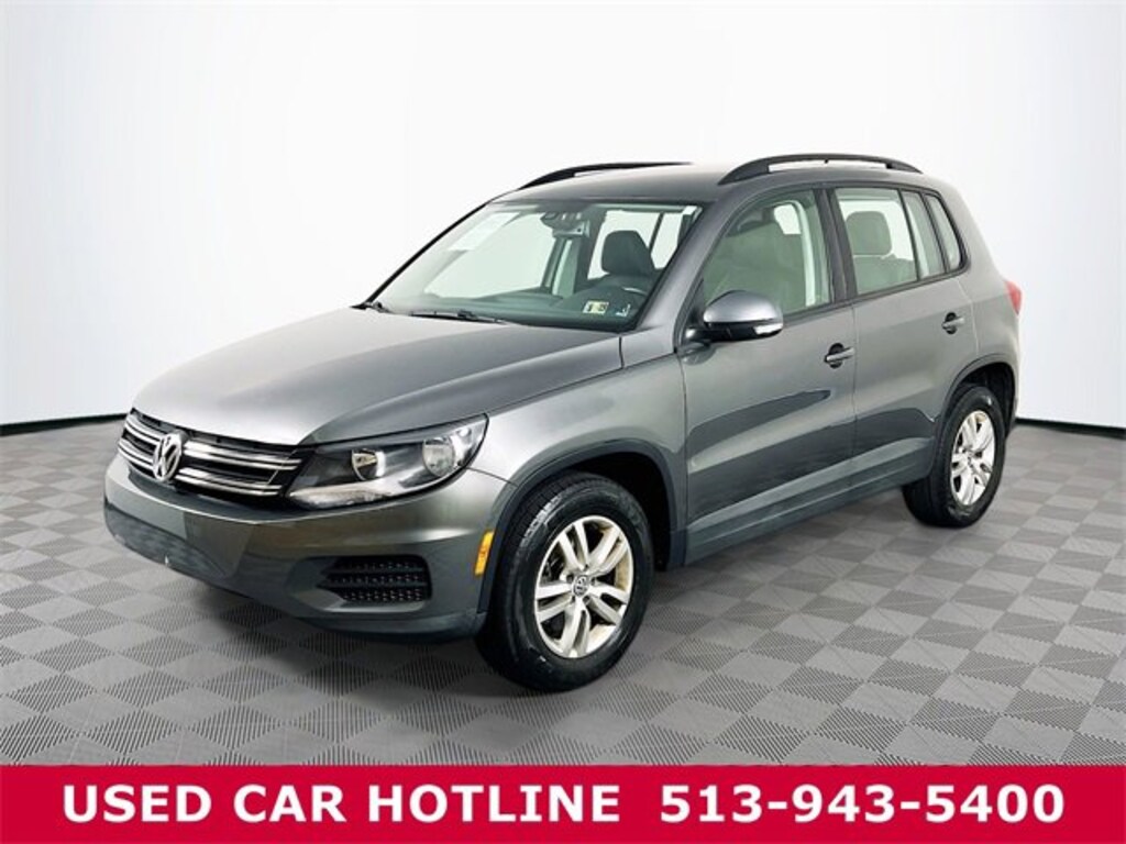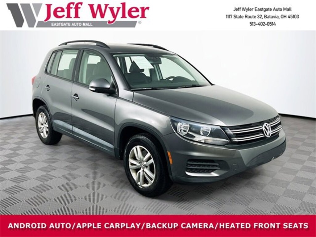 Jeff Wyler Eastgate Auto Mall is proud to offer this great-looking 2016 Volkswagen Tiguan S in Pepper / Gray. Well equipped with: 3.45 Axle Ratio, 4-Wheel Disc Brakes, 8 Speakers, ABS brakes, Air Conditioning, Alloy wheels, AM/FM radio, Auto-dimming Rear-View mirror, Brake assist, Bumpers: body-color, CD player, Compass, Driver door bin, Driver vanity mirror, Dual front impact airbags, Dual front side impact airbags, Electronic Stability Control, Exterior Parking Camera Rear, First Aid Kit, Four wheel independent suspension, Front anti-roll bar, Front Bucket Seats, Front Center Armrest w/Storage, Front reading lights, Fully automatic headlights, Heated door mirrors, Heated Front Bucket Seats, Heated front seats, Illuminated entry, Leather Shift Knob, Leather steering wheel, Low tire pressure warning, Occupant sensing airbag, Outside temperature display, Overhead airbag, Overhead console, Panic alarm, Passenger door bin, Passenger vanity mirror, Power door mirrors, Power driver seat, Power steering, Power windows, Radio data system, Radio: AM/FM/CD w/USB & Aux-In, Rain sensing wipers, Rear anti-roll bar, Rear reading lights, Rear seat center armrest, Rear window defroster, Rear window wiper, Remote keyless entry, Roof rack: rails only, Rubber Mat Kit, Security system, Speed control, Speed-sensing steering, Split folding rear seat, Spoiler, Steering wheel mounted audio controls, Tachometer, Telescoping steering wheel, Tilt steering wheel, Traction control, Trip computer, Turn signal indicator mirrors, V-Tex Leatherette Seating Surfaces, Variably intermittent wipers, and Wheels: 16" Portland Alloy. Ask about available certifications. Used vehicles 10 years of age or newer with less than 100,000 miles are eligible for the Wyler Assurance Program, but eligible vehicles must pass our reconditioning process and multi-point inspection. Provided the vehicle passes inspection, vehicles will be eligible for the 6 month/6,000 mile limited warranty. The 6 month/6,000 mile limited warranty is NOT available on AS-IS vehicles, wholesale vehicles, lease buyback/pass-thru vehicles or un-inspected vehicles. Note that this program can also apply to vehicles where the remaining factory coverage is less than 6 months or 6,000 miles. Please check the Federal Trade Commission (FTC) Buyers guide on the vehicle for full details as to whether or not warranty coverage may apply. Contact Dealer for additional details. The Wyler Assurance 6 month/6,000 Mile limited warranty ends 6 months from the date of the Retail Purchase Agreement (BUYERS ORDER) or when the vehicle's odometer registers 6,000 additional miles to the mileage listed on the BUYERS ORDER, whichever comes first. Your Deductible - The warranty holder on your contract pays the first $100 of each covered repair.